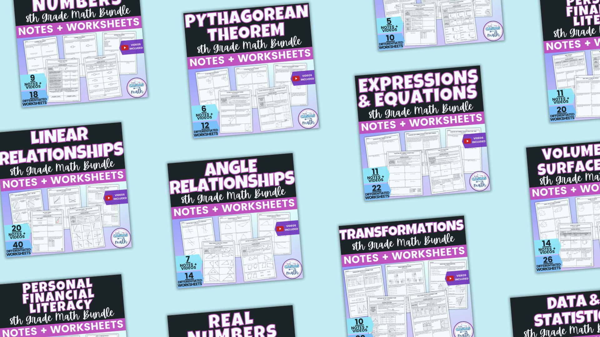 8th Grade Math Notes and Worksheets BUNDLE Entire Year