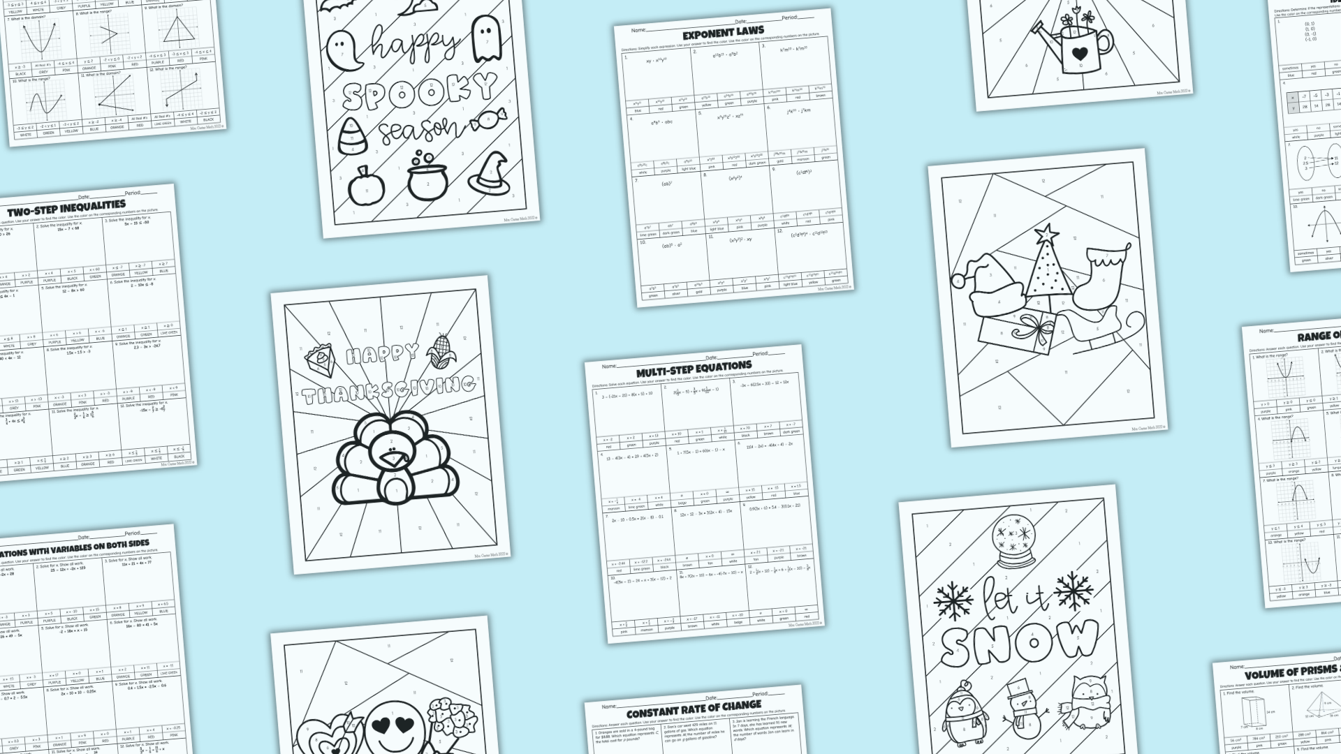 8th Grade Math Seasonal Coloring Activity Worksheets Bundle