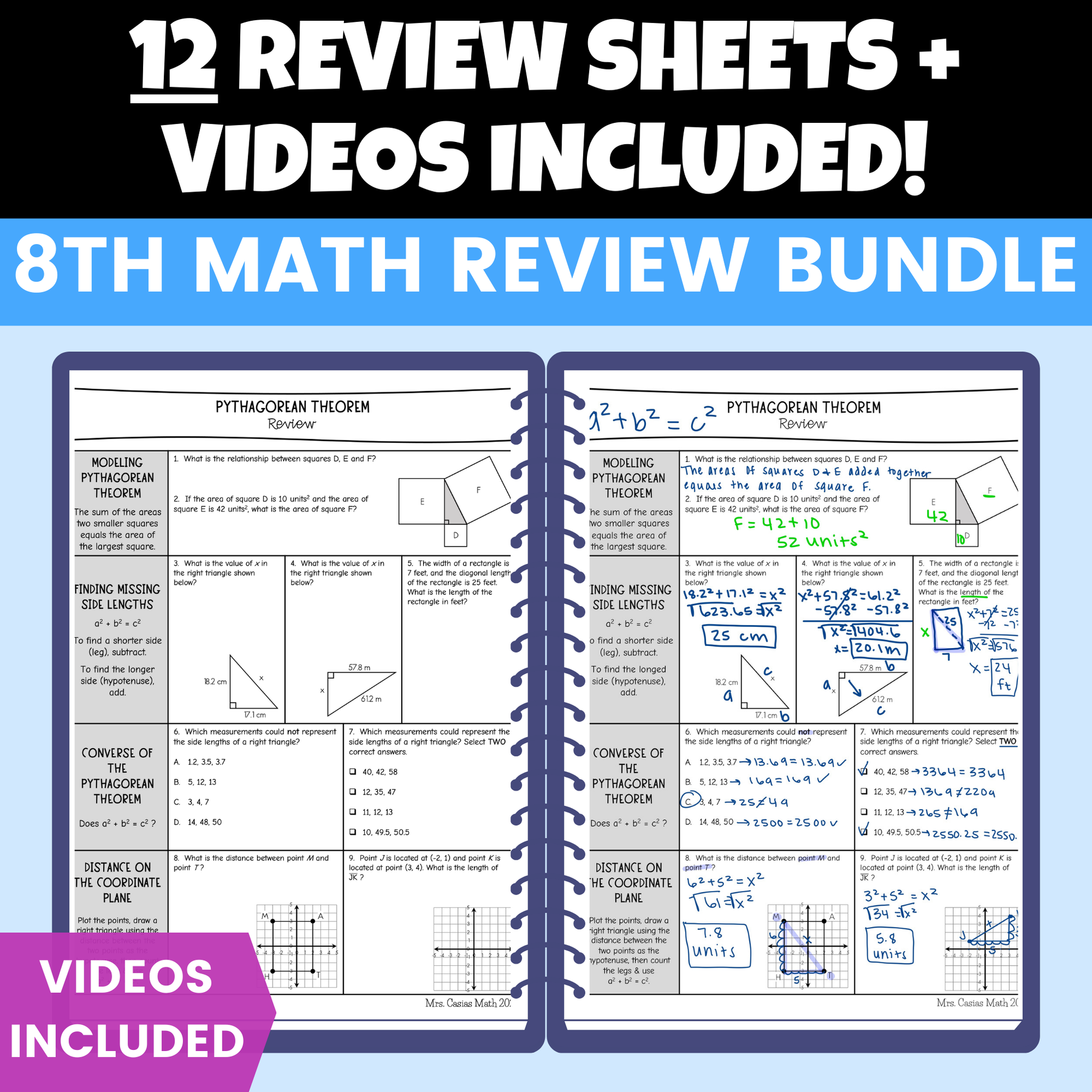 8th Grade Math STAAR Review BUNDLE - Review Sheets, Mini Quizzes, Worksheets