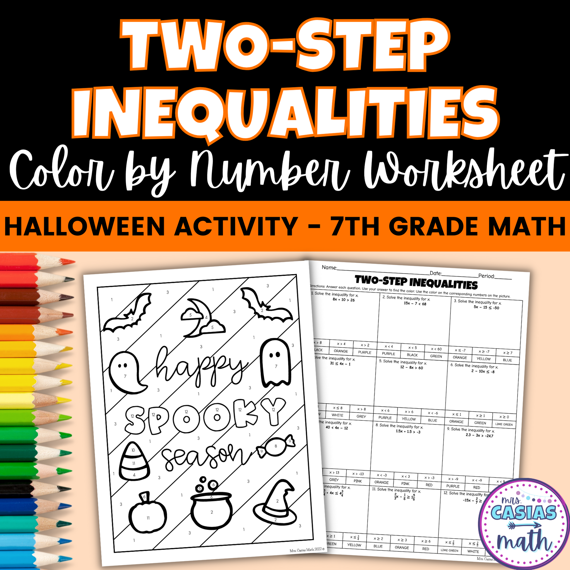 Halloween Math Activity for Middle School Two Step Inequalities Coloring