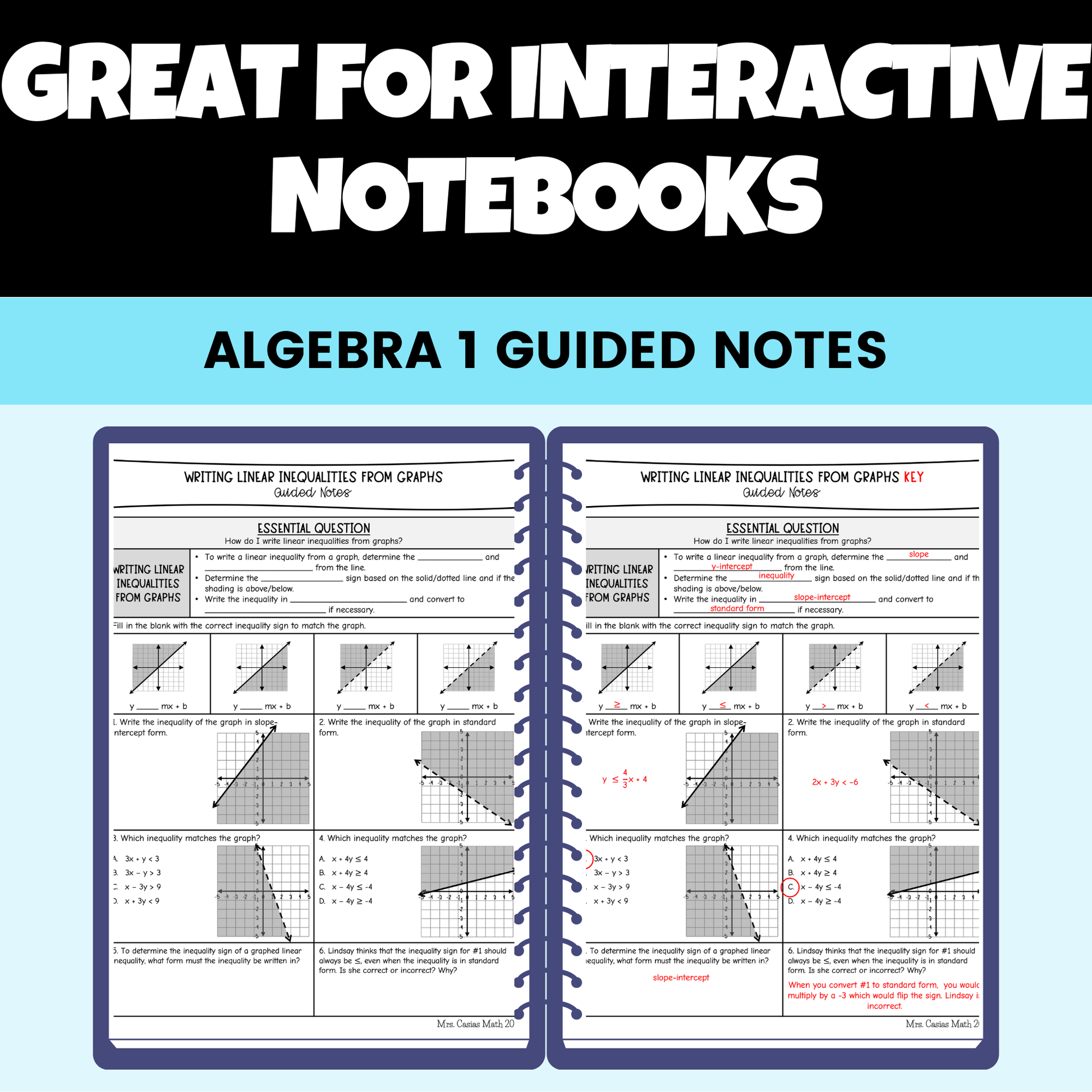Algebra 1 Guided Notes and Differentiated Worksheets Mega Bundle Entire Year