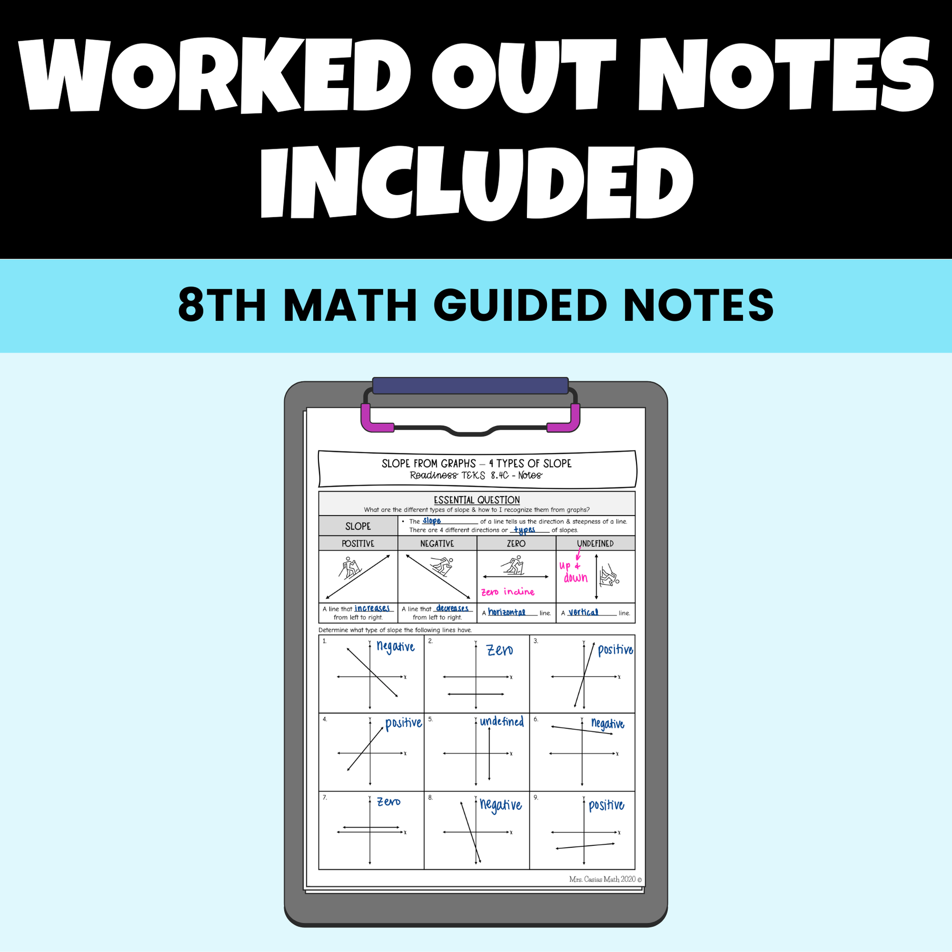 8th Grade Math Notes and Worksheets BUNDLE Entire Year