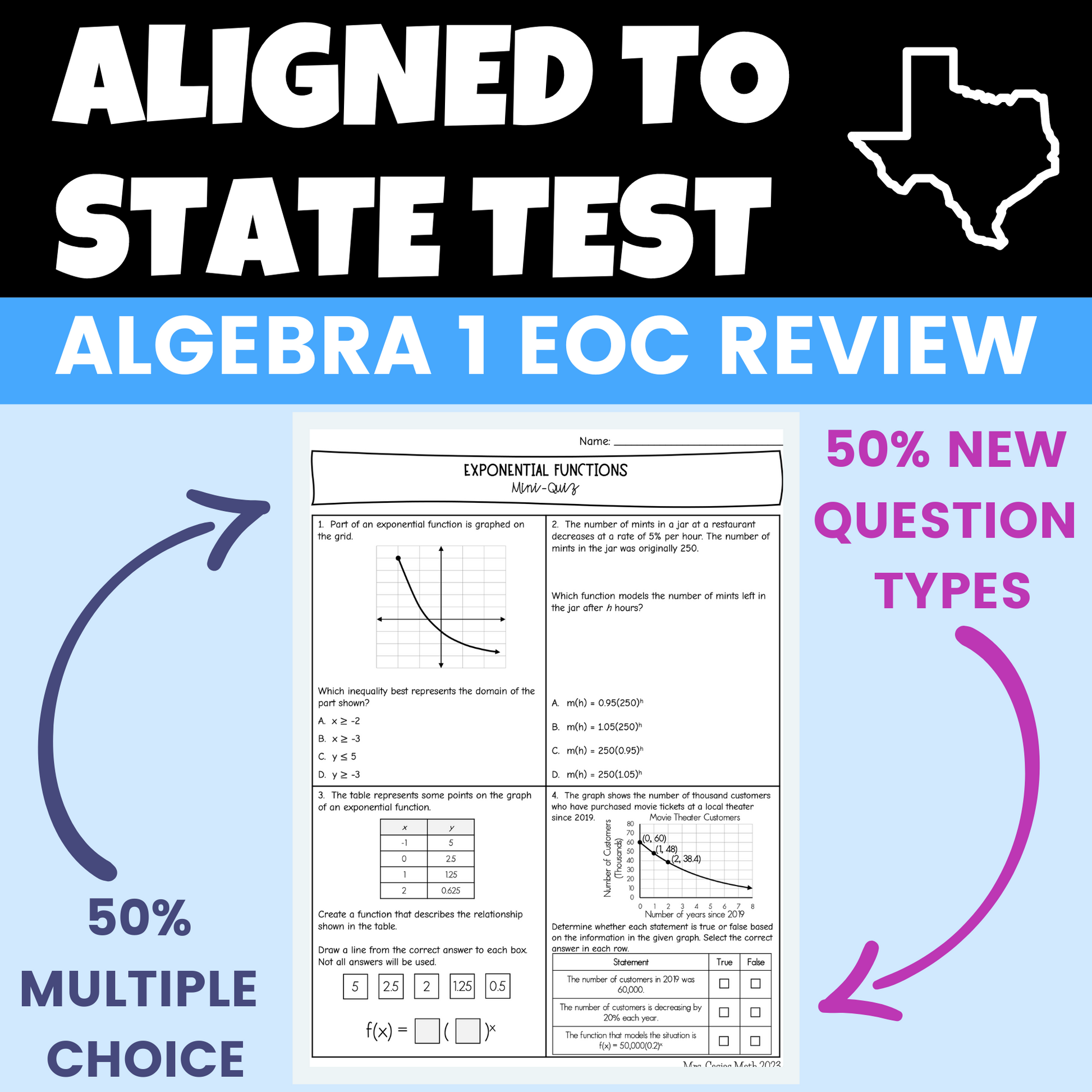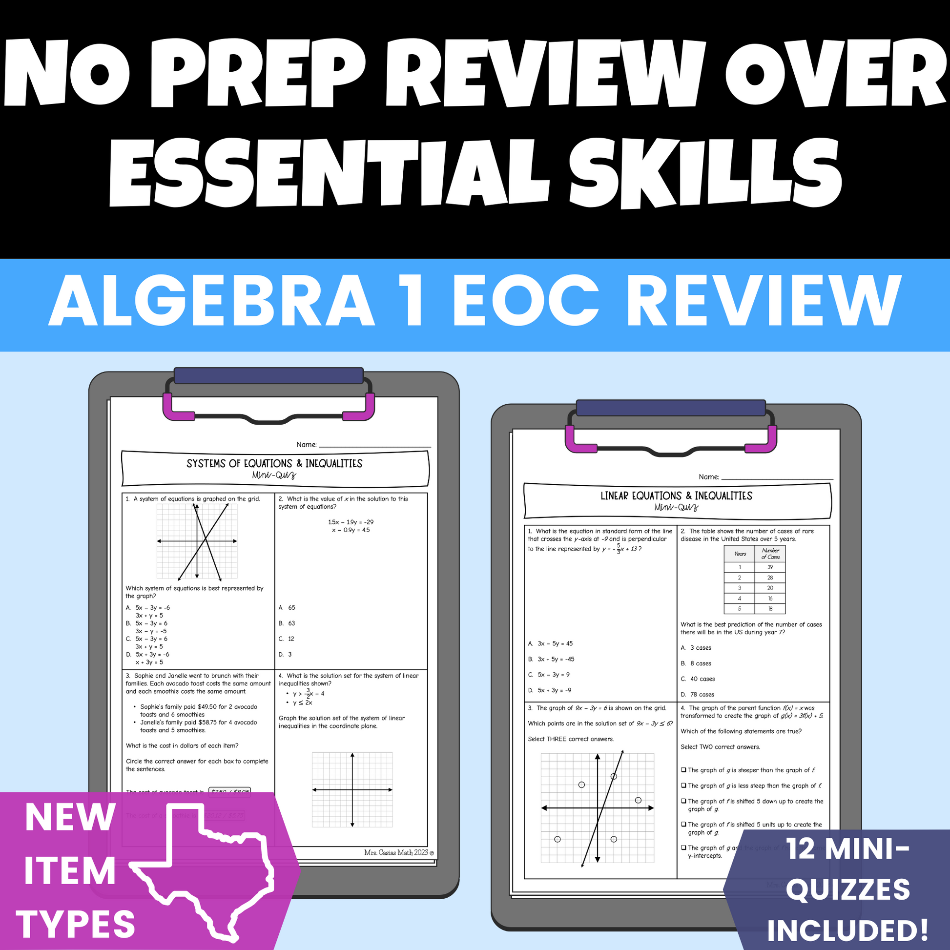 Algebra 1 EOC Review BUNDLE - Review Sheets, Mini Quizzes, Worksheets