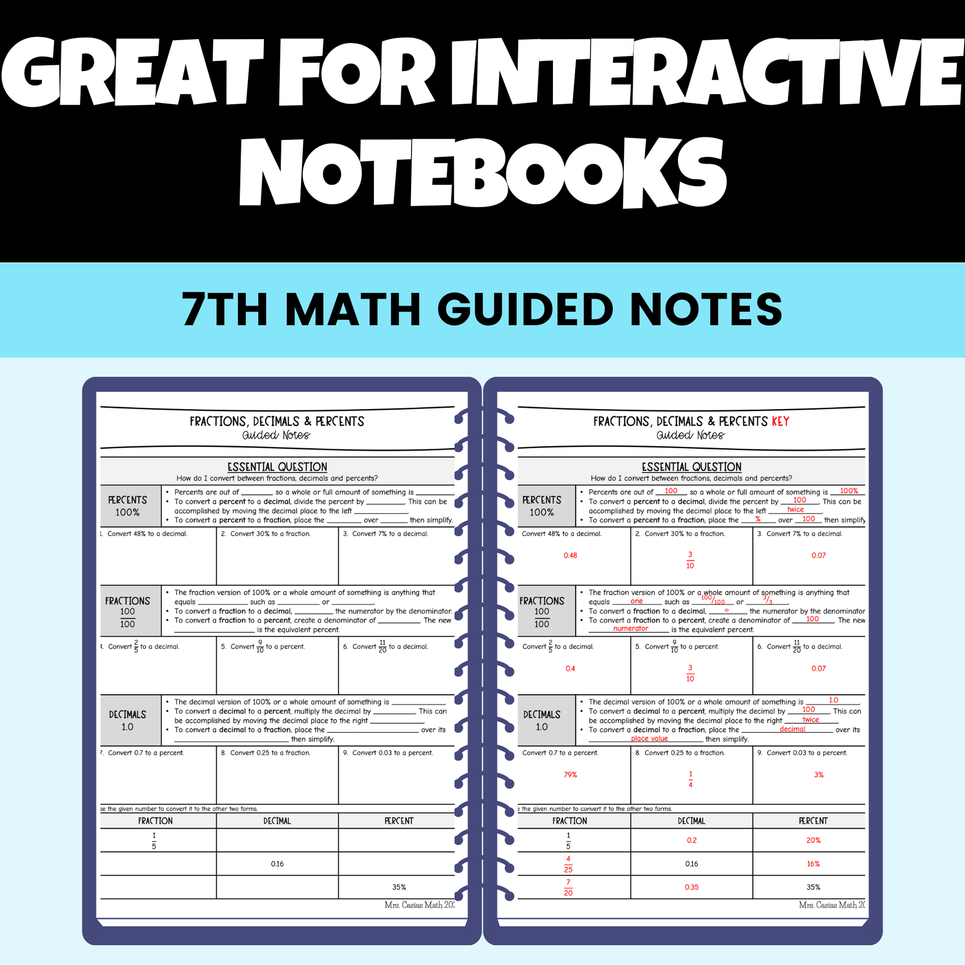 7th Grade Math Guided Notes and Differentiated Worksheets Mega Bundle Entire Year