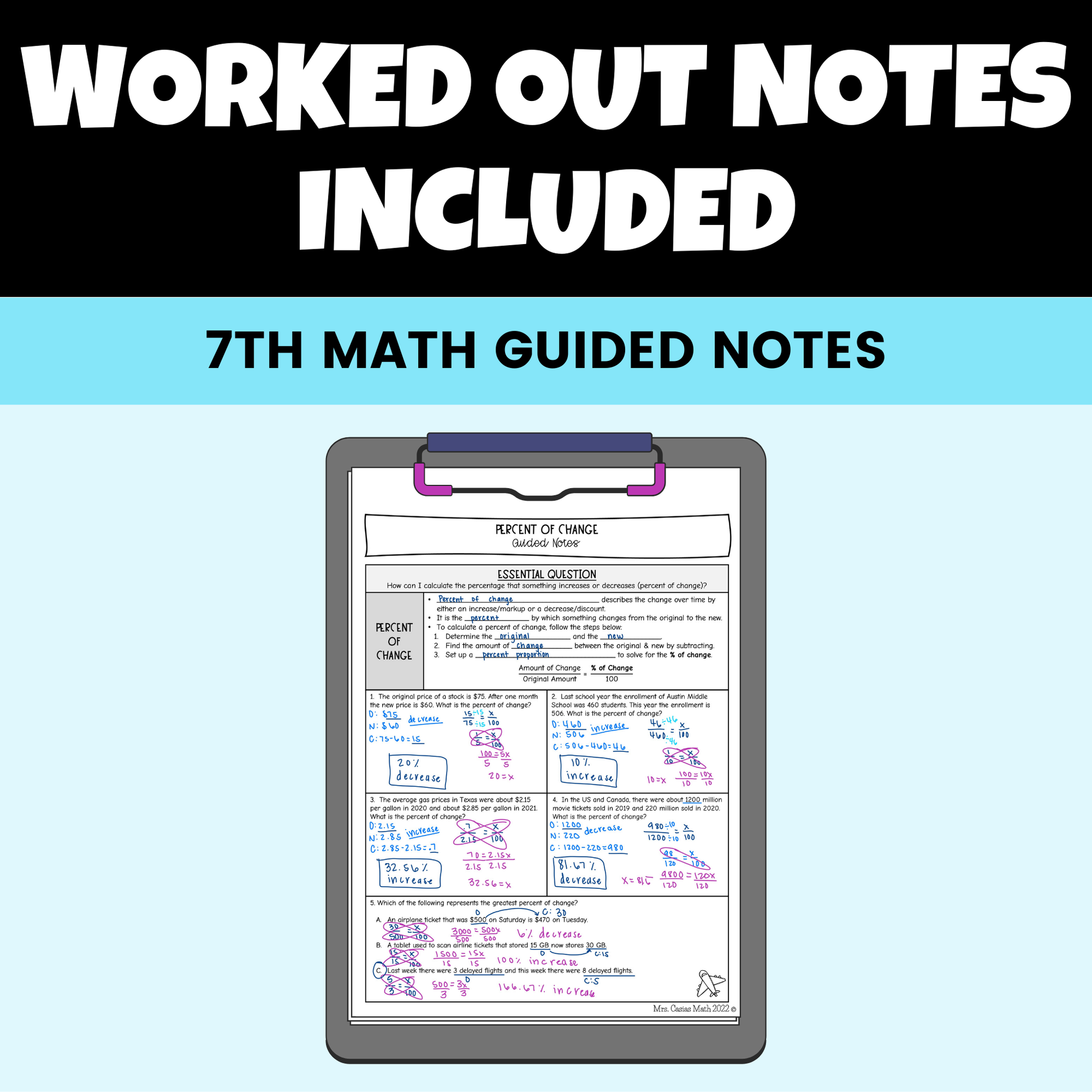 Percent Proportions and Percent of Change Guided Notes Lessons 7th Grade Math