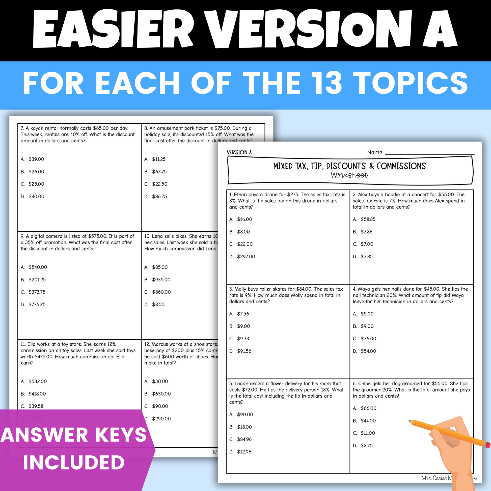 - Mixed Tax, Tip, Discounts & Commissions Worksheets