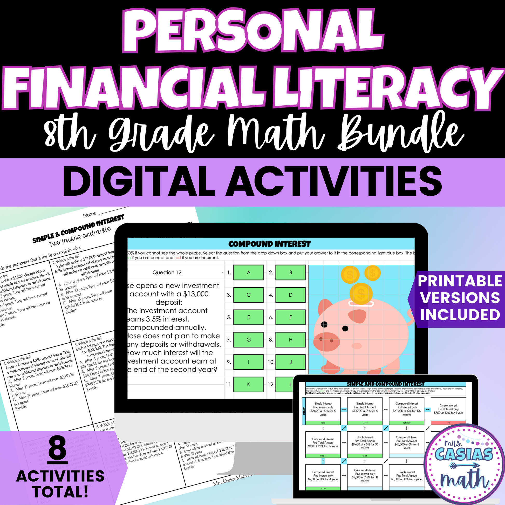 Personal Financial Literacy Digital Activities and Worksheets 8th Grade Math