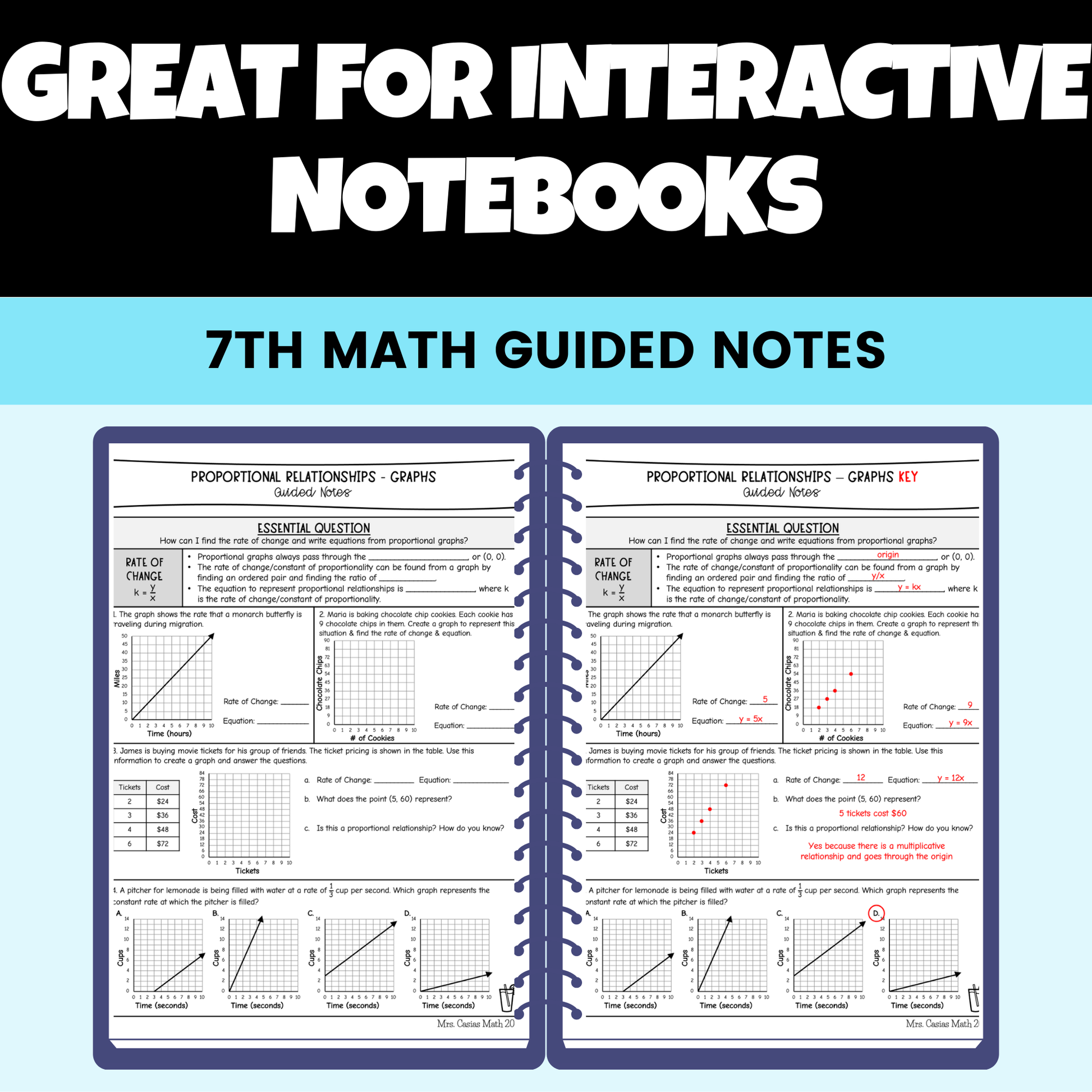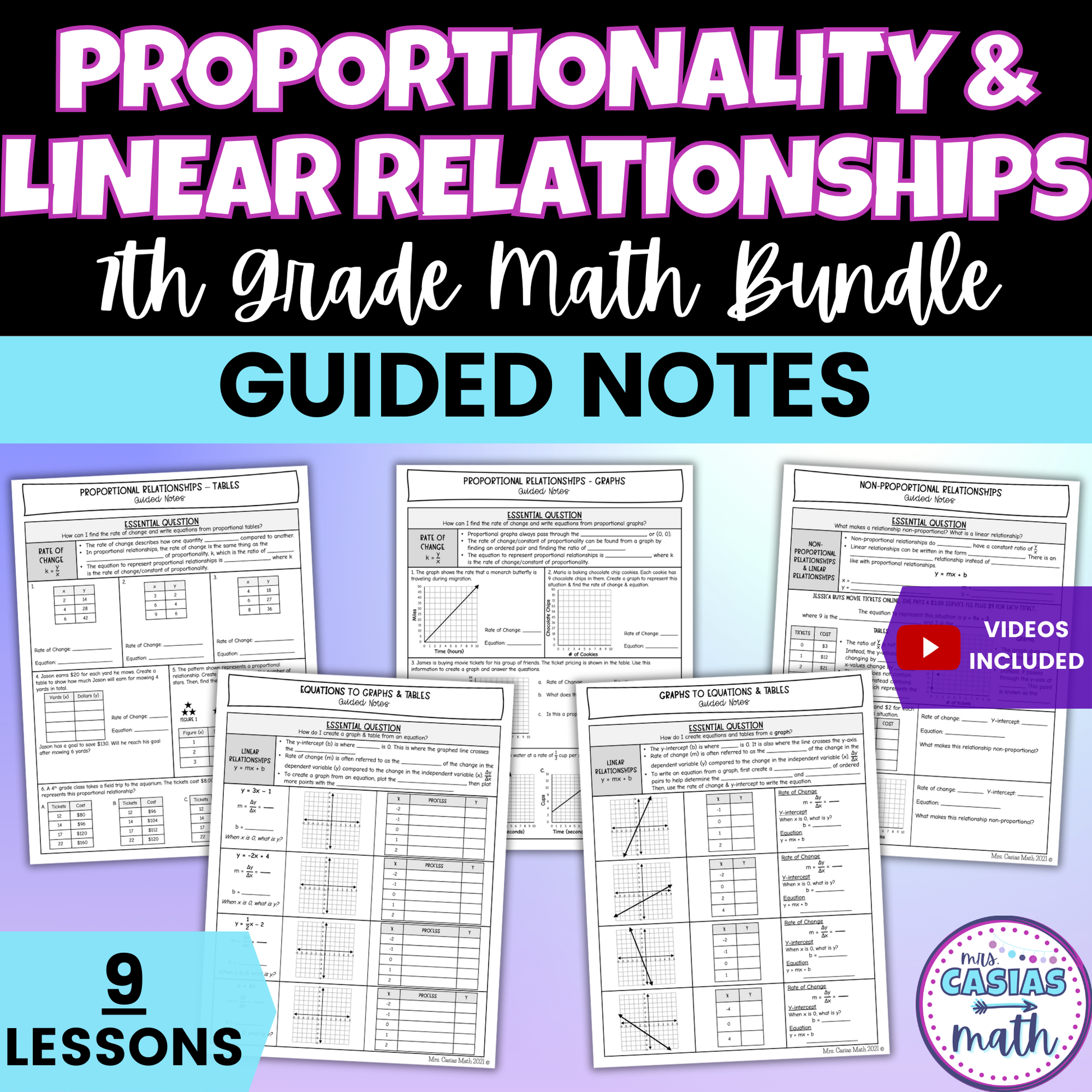 Proportionality and Linear Relationships Guided Notes Lessons 7th Grade Math