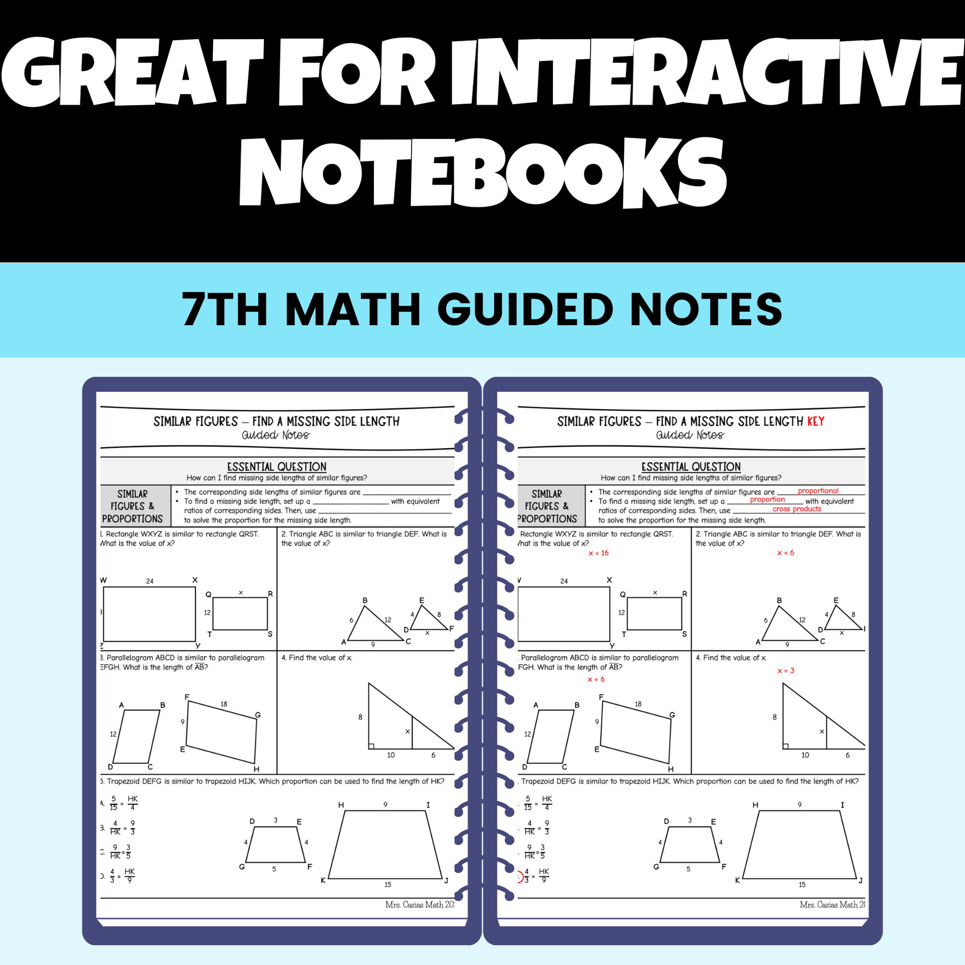 Proportions and Similar Figures Guided Notes Lessons 7th Grade Math