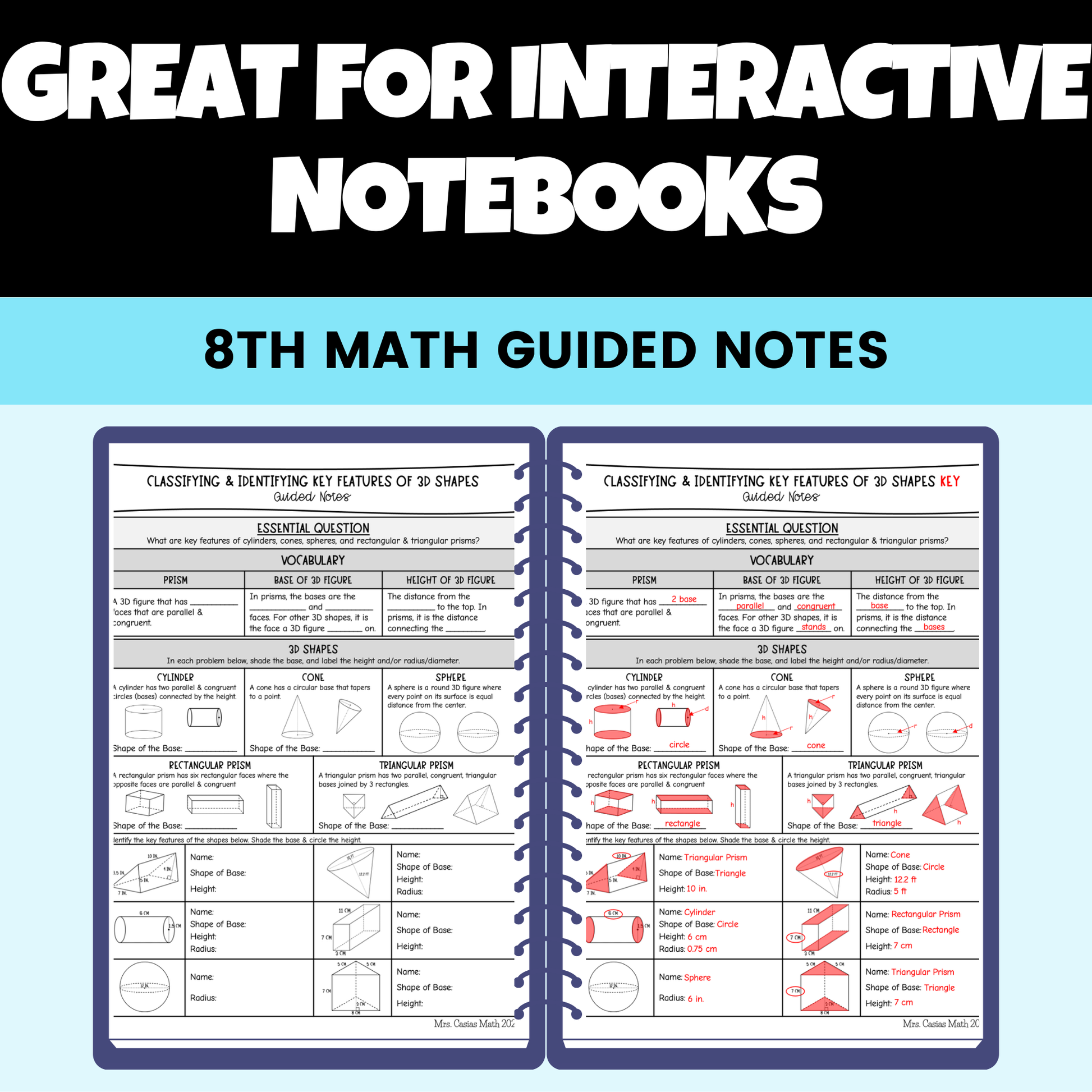 Volume and Surface Area Guided Notes Lessons 8th Grade Math