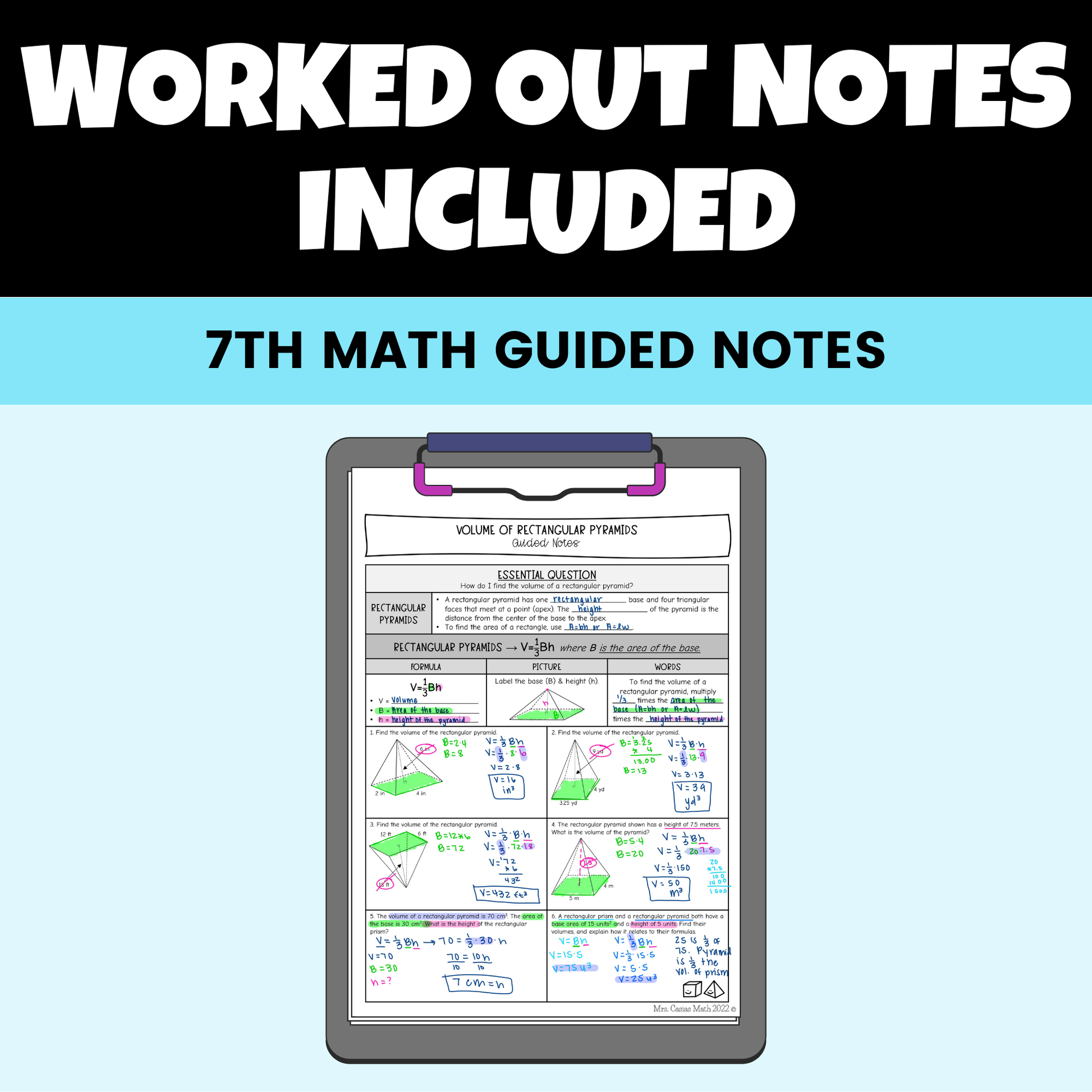 Volume of Prisms and Pyramids Guided Notes Lessons 7th Grade Math